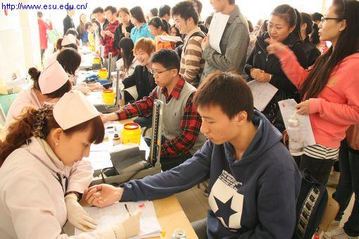 11月11日上午我校有538名同学参加了义务献血活动。整个献血过程从动员、组织、落实都得到了学校各位领导的高度重视。党委书记赵佩琪,副校长程龙根,学工部部长郁萍亲临现场,看望和慰问义务献血的同学们,对志愿者的辛勤劳动给予了高度的评价,后勤保障部门为献血的同学们准备了可口的饭菜,让他们在奉献的同时也得到了关爱。