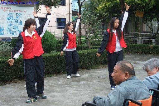 这次活动,志愿者们精心为敬老院老人们准备了一台精彩的文艺表演。开场一段活力四射的现代舞,让老人们情不自禁地随着音乐的节奏摇摆、鼓掌;一段声情并茂的相声,更是把老人们逗得合不拢嘴;一段出神入化的太极拳,受到了老人们的热情欢迎和追捧;优美的“孔雀舞”、经典的“甜蜜蜜”……一个个生动的节目勾起了老人对年轻时代的回忆,他们个个笑逐颜开。文艺表演结束后,志愿者们有的围坐在老人们身边陪他们聊天,有的推一些行动不便坐轮椅的老人们出去散心,希望让老人们能感受到儿孙绕膝般的天伦之乐。志愿者们还给老人们准备了棉袜当作小礼物,希望在冬季即将到来的时候给老人们送上一份关怀,增添一份温暖。