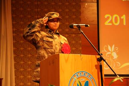 商贸学院办公室主任王莉娜回顾了在征兵动员等过程中做的工作和自己的感受并希望入伍同学到了部队努力学习和训练,做一名合格的军人。