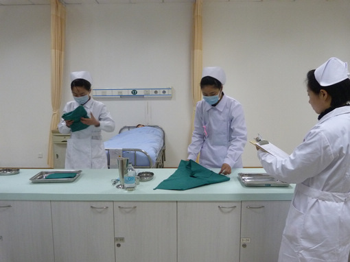 我院护理系“首届护理技能大赛”的初赛于3月2日正式开赛,赛前系副主任桑未心对选手作了动员讲话。8点整,比赛正式开始,选手们信心十足,志在必得的排好顺序,进入赛场。初赛的项目是:铺备用床和无菌技术。铺备用床是护理工作最基础、最重要的操作技能,主要涉及病床的整理、预备,检验选手们对床垫、床单和被褥的折叠、摆放技能水平;无菌技术也是临床护理工作最重要的技能之一,检验选手们的消毒、卫生意识,和日常操作常规无菌化处理的技术。在比赛中,选手们神情关注,十分投入,按照教学和比赛的要求,动作熟练规范,步步到位,显示了选手们的技能熟练度、心理稳定性和临床实战意识,下午3点初赛全部结束。决赛将于3月9日举行,项目有无菌技术、肌内注射、铺备用床。