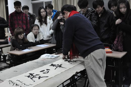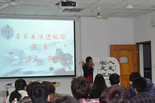 3月14日,教务处和校团委联合在图文楼北502举办了 “名家书法进校园”的讲座。学校有幸请来了著名旅美中国书法家朱彬先生。校长助理尹雷方、校团委书记杨静老师参加了此次活动。