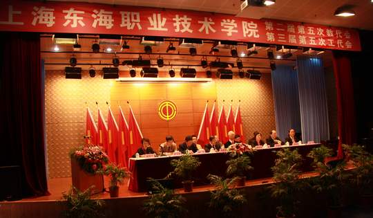 曹董事长向大会致辞,他代表校董事会向大会召开表示热烈祝贺,并宣布了最近董事会上做出的四项决议案,即:要求全校教职员工全力以赴,力争成为上海市市级特色高职院校;要启动实训大楼前期准备建设工作;要对校园重新进行整体规划设计,建成花园式单位;要做好20周年校庆的筹备工作。曹董事长热情洋溢的致辞和对东海美好前景的展望,振奋人心,使全校教职工深受鼓舞。