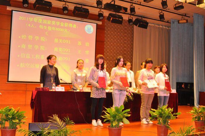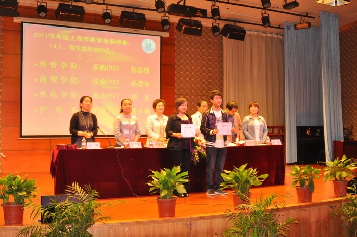 颁奖大会由学生工作部部长郁萍主持。党委书记赵佩琪宣读上海东海职业技术学院《关于颁发2010-2011学年国家奖学金、国家励志奖学金、上海市奖学金及2011-2012学年第一学期校奖学金的决定》,主席台领导为获奖学生颁发荣誉证书。国家奖学金获奖学生代表报关091班苏洁、国家励志奖学金获奖学生代表国商091班徐志强、第一届新疆少数民族学生奖学金获奖学生代表护理114班买热哈巴·玉苏莆等同学在颁奖大会上代表获奖同学发言,表示今后将继续奋发努力,百尺竿头更进一步。