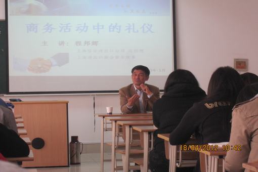 受聘仪式结束后,程总经理为国际商务2010级学生授课,讲授商务礼仪知识。程总经理主要围绕商务活动中礼仪的重要性,讲述以下几个方面:首先,介绍了多个国家的商务礼仪文化;其次,选讲了着装礼仪、餐桌礼仪、电话礼仪、座位礼仪等一些常规的礼仪文化;第三,举例说明在职场上不懂商务礼仪所带来的诸多问题。