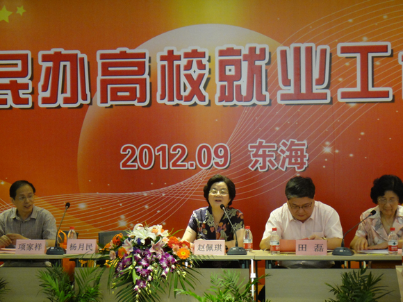 会议由市民办高校就业工作协作组组长朱莉莉主持。党委书记赵佩琪代表党政领导致欢迎词。她指出就业工作是高校的重要工作之一,关系到学生的切身利益。上级领导对就业工作非常重视,自金融危机以来,经过努力,民办高校的就业工作形势有了明显好转,是在座各位的努力和辛勤付出。这两年东海学院的就业工作有进步也有提高,这与上级领导的支持和兄弟院校的帮助分不开的。就业工作交流会议在我校举行,为我们东海学习各校经验创造了条件。