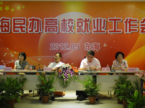 校长项家祥介绍了我校近年来在上级领导的支持下取得的巨大发展:2010年评为上海市文明单位;2011年通过人才培养评估的复查;2012年我校《上海市市级特色高等职业院校建设计划》申报成功。项校长强调,我们民办高校的办学目的是为培养学生,在校我们要把学生培养好,使他们有知识、有技能,能适应社会需求。在目前生源数量逐年下降的情况下,要把培养学生的工作做得更精致、学生更具有就业竞争力。项校长感谢上级领导对东海工作的支持,更希望兄弟院校无私传授就业工作的经验。
