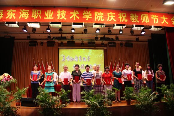 会上,教师代表陆爱勤、学生代表傅乐毅也作了发言。党委书记赵佩琪还宣读了《关于表彰2011-2012学年优秀、先进教育工作者、民族工作优秀者的决定》,学校领导分别为获奖教职工颁发奖状。接着,校长项家祥作了大会讲话。项校长说2012年是值得骄傲的一年,在董事会的领导下,我们东海学院以规范科学和高效的管理赢得了上海市示范性民办高校建设项目,通过示范校的建设,我们会有三个方面的受益;我们启动了双百工程和强师工程等等,这些都为东海学院的社会形象增色添彩。今年暑假又是东海学院最忙碌的一个暑假,全校13个实训室建设和16个基建维修工程同时在进行,学校食堂、宿舍等各项设备硬件更换一新。他特别真挚的对我校呕心沥血,甘为孺子牛的一大批令人深深感动的老师和事迹进行了介绍。同时他指出今年下半年和明年的任务是十分艰巨的,我们要努力在专业结构上形成有特色专业群;在办学体制上完善现代民办高校管理;在校园建设上建成文化浓郁的美丽校园。通过为期三年的建设,要夯实以特色专业建设为抓手的上海市特色高职院校建设工作,要开创以优质管理和学校整体建设为目标的上海市示范性民办高校建设工作,要继续实施以社会主义精神风貌和校园氛围的第二期上海市文明单位的建设工作。
