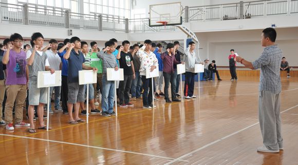 为促进新生之间的交流与了解,丰富课余生活,10月10日,我校第十二届“东海杯”新生篮球赛在体育馆二楼拉开帷幕。校团委书记杨静老师,团委胡忱老师,总裁判长覃家宁老师,副裁判长张昆老师,各院系分团委书记,学生会干部和全部参赛选手出席了开幕式。