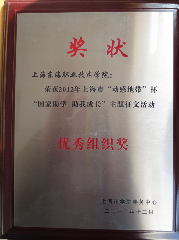 为深入宣传贯彻党和国家资助家庭经济困难学生政策,加强对学生的励志感恩教育,全面展现家庭经济困难学生资助工作取得的成绩,2012年底,我校受助学生积极参加上海市教育委员会组织开展的“动感地带”杯“国家资助 助我成长”主题征文活动,共收到投稿作品50余篇。经学校初审,选送优秀作品参加组委会专家评审,经管学院报关121班学生张立志的作品《在这充满爱的国度》获得二等奖,商贸学院商日101班学生刘志瑞的作品《无声资助,有声回报》获得优秀奖。在此次征文活动中,我校组织工作得力,获得“优秀组织奖”荣誉称号。
